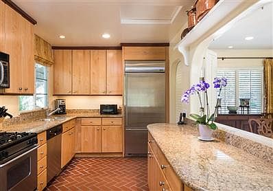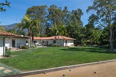 1-story gated Mediterranean home, on just over 1 AC, mountain views. Close to Montecito Union School, Upper and Lower villages. Classic yet unique touches inside! Inviting gardens host mature palm/oak/citrus trees, succulents, giant Birds of Paradise, roses, bocce court, and courtyard patio for lounging or entertaining!