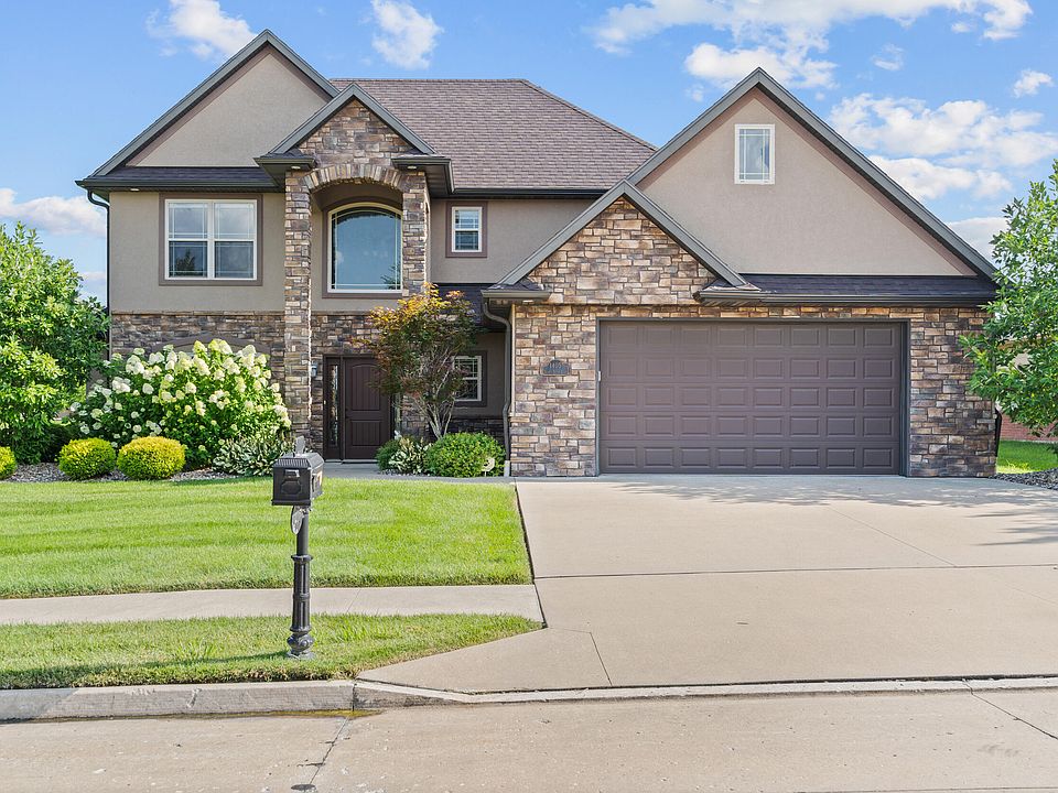 Beautiful move-in ready 1.5-story home in Old Hawthorne featuring 4 large beds, 2.5 baths, fresh neutral paint throughout, and professionally cleaned home/carpets. Kitchen offers gas cooktop with vent hood, wall oven & microwave, Stainless steel refrigerator, granite countertops, 8' island, and walk-in pantry. Main-level primary suite has jetted tub, tiled shower, massive walk-in closet, and direct access to laundry w/ sink. Formal dining or office. Vaulted great room w/ fireplace. Oversized 2-car garage, tankless water heater, water softener, washer & dryer included. Covered stamped patio, lush yard, sprinkler system. Social membership required; Optional pool, golf and athletic memberships through The Club at Old Hawthorne. Buyers to verify all listing data and information.