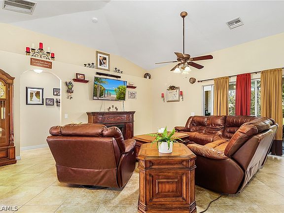 ASSESSMENTS PAID!!! Located in Southwest Cape Coral, this 4 bedroom/2.5 bath home is a must see! 2100 sq ft with an open floor plan, spacious bedrooms plus bonus room which can be made into another bedroom, office, craft room, etc. Formal walk-in dining room and casual kitchen breakfast bar great for entertaining. Upgrades include a Brand New AC system (2022) includes a 5-year warranty, new slate kitchen appliances, new walk-in shower and soaking tub in the master bathroom. Enjoy the screened in oversized patio, while you look out and enjoy views of many mature tropical edible fruit trees (banana varieties, red guava, papaya, and other colorful flowering trees and plants) This home is in a great location in Cape Coral! Less than two miles away from five A+ schools, some of the best in all of Lee County. Close to connecting bike paths, and hiking trails. Southwest Florida is just paradise! Schedule your showing to see this gorgeous home today, you do not want to miss it!!!