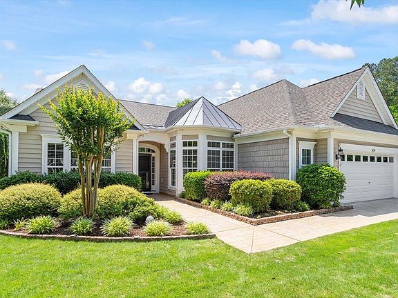 Welcome to this gorgeous and elegant Cumberland Hall! Upgrades include: over $20k of solar panels with transferable warranty means unbelievably LOW electric bills *remodeled primary bathroom with tiled shower, multiple shower sprays, frameless door, lighted mirrors w/de-mister, new tiled floor *Kitchen with new granite countertops, white cabinetry, newer electric cooktop, pendant lights *plantation shutters *storm doors *electric car charger *luscious lawn w/irrigation system and custom beds *NEW AC & newer roof *wide plank hardwood floors *custom closet design in primary closet *living room w/FP and wall built-ins *retractable awning. Located in a quiet cul de sac in Cary's premier 55+ active adult community. Move-in ready!