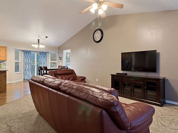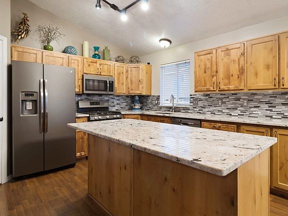 Beautiful move-in ready home in a great neighborhood. Open layout kitchen and family room area with vaulted ceiling. Upgraded kitchen appliances and cabinets. Beautiful granite counters tops in bathrooms and kitchen. Fully finished basement with an office, bedrooms and storage areas. Fenced yard with fruit trees and raspberry bushes. South facing solar panels on the roof! Home wired for fiber optic internet. Great school district and programs for children.