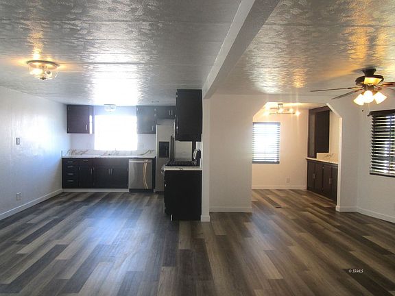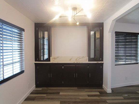 Newly renovated 2 bedroom, 2 bathroom Mobile home.Open kitchen with quartz countertops, new stainless steel range, dishwasher, and built-in microwave. The dining room has built-in China cabinets. Open living room and family room with pot belly furnace. Primary bedroom has en suite with new stand alone shower and walk in closet. Carpet in bedroom.2nd bedroom also has a guest bathroom with a deep soaker tub and tile tub & shower surround. Indoor laundry area, with storage cabinets.Luxury waterproof vinyl plank flooring throughout, carpet in bedrooms. Stainless steel refrigerator provided but not warranted. pot belly furnace is just used as a feature. The living room and both bedrooms have ceiling fans. The large outdoor shed provides lots of storage space. Evaporative cooling and forced air eating. Large front porch. Copyright Ridgecrest Area Association of Realtors. All rights reserved. Information is deemed reliable but not guaranteed.
