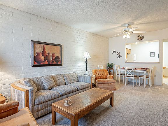 This charming 2 bedroom/2 bath townhome is perfect for seasonal or year round living. Enjoy cool beverages on the low care front patio with peek-a-boo mountain views and parking is not an issue with the double carport. Plus, the entire exterior has a fresh coat of paint. The interior is bright and airy with 2 new skylight domes and each room has ceiling fans for your comfort. The DH3 Social Center and the Elks Lodge are within walking distance from your front door. All you have to do is move in and enjoy.