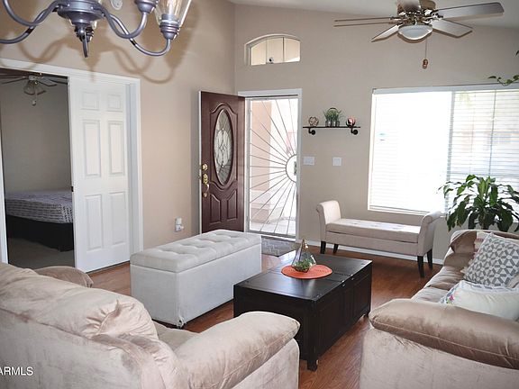 A beautiful and spacious home in a wonderful, quite NON-HOA neighborhood. Can't be better & convenient location than this home. Just couple minutes away from 101 and I17 highways and shopping centers. This 1,833sqft open floor plan feels fresh and good vibes the moment you walk in.office room or you can call 4th bedroom with double doors right by main entry. kitchen has upgraded cabinets and matching appliances with beautiful countertop and backsplash. fridge, washer/dryer (as-is) included. private pool.house was painted throughout interior and exterior in 2020. garage has top-head storage added. you just don't want to miss this because it won't stay long.
