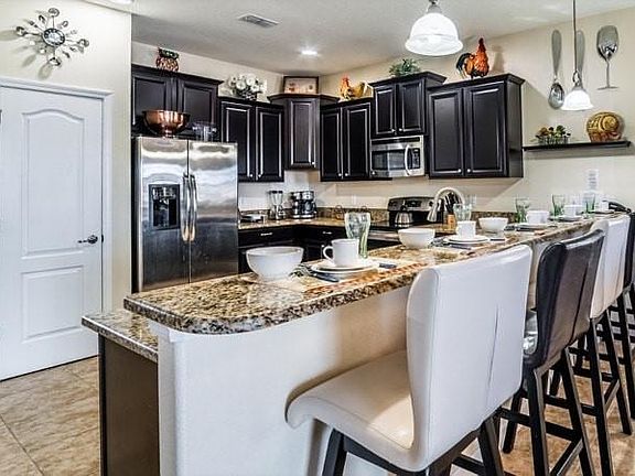 ELEGANT FULLY FURNISHED Grand Two-Story Home in Champions Gate.This Retreat at Championsgate is the perfect property for vacation. Championsgate located off I-4 and only minutes from the Walt Disney World Resort. Large 8 bedroom 5 bathroom ,Private Heated Swimming Pool and Spa. NO REAR NEIGHBORS!! Fully Equipped Kitchen with 42" Cabinets and Stainless Steel Appliances granite Counter tops.Master Bedroom and another bedroom on first floor. Garage converted in a Game Room, 6 bedrooms and 4 bathrooms + a bonus room and loft on the second floor ADDITIONAL PRIVACY: NO Direct Back Neighbors. Champions Gate GRAND CLUBHOUSE with Concierge Services nearby this property, WATER-PARK, Resort Style Pool, Spa, Lazy River, Water-Slides, Swim-Up Bar, Water Falls, Beach Entry, Splash Pad, Grill, Tiki Bar, Cabanas, FULLY EQUIPPED Fitness Center, Theater, Games Room, Basketball Court and 7 Tennis Courts. Perfect to for relaxing with friends and families.