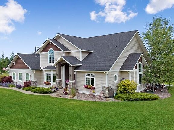 You'll want to look at this well cared for 4 bedroom, 3 bath, 4 car garage home on 1.18 acres with views into Glacier Park, Big Mountain & all along the Swan Range. Recent upgrades include a new roof (2021), newer carpet throughout much of the home and a large composite deck (575+/- sq.ft.) and exposed aggregate patio (900 +/- sq.ft.) complete with fire pit and large hot tub. You'll appreciate the vaulted open concept living starting with the box-beam barrel ceiling feature in the entry foyer. The large living room features a gas fireplace and a large wall of windows, including double french doors that lead out to the deck. SEE SUPPLEMENT for additional information. Agent owned. Contact D.J. Walker at 406-250-2487 or your real estate professional. A main level office is always a welcome addition off of the entry foyer. The main level master suite features a high coffered ceiling, a gas fireplace, french doors leading to the deck, a soaking tub with glass block accent wall, shower, dual sinks and a walk-in closet with closet organizers. A second, spacious bedroom is on the main floor with a large window seat and storage underneath. The kitchen has hickory cabinets, tiled backsplash, dry bar, desk area with small television and stainless appliances including a wall oven and a new Bosch dishwasher. An R/O system services the fridge and sink dispenser which also has instant hot water. A good sized two level island offers lots of seating space for entertaining while providing separation from the living room. A nearby walk-in pantry has plentiful storage. A large dining area off the kitchen has windows on three sides -enjoy the mountain views while you dine. The stairs lead to an open sitting room/small entertaining area complete with a skylight, convenient storage closet and discrete laundry chute to the laundry room below. There are two more generous sized bedrooms along with a full bathroom with dual sinks, and one of the bedrooms has its own sink for convenience and a private 12 x 14 balcony. And finally, a large media/theater room over the garage provides lots of space for fun with plenty of room for seating along with a game table. The home includes a 100 inch Stewart screen and a Sony front projector and is wired for 5.1 surround sound. And there's plenty of room for your outdoor toys in the heated four car garage with storage closet. Some wall cabinets are included as is a utility sink. The home has two nat. gas furnaces, each with air conditioning and a gas hot water heater with additional electric water heater for extra storage. The water softener is included with the home and the home is rough plumbed for central vac if so desired. The home sits on a large, landscaped 1.18 acre yard and is within 4 minutes of town and the bypass for convenience to north Kalispell shopping or heading to Flathead Lake. Included in list price is a $10,000 credit toward updates and repairs, call listing agent for details.