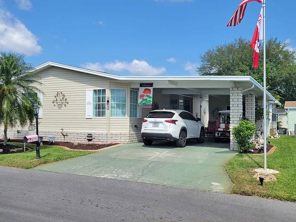 Homes in the Four Lakes Golf & Country Club, a 55+ golf community, are on lot leased land. Owning the home, but not the land, you pay a monthly lot rent of $ 595 which gives you and your guest access to the amenities of the community............ If you want to live the resort style life at a comfortable price then this 2180 sq. ft. home is for you. Within short distance of Disney, Legoland, and the Winter Haven Chain of Lakes, this home is waiting for a discriminating buyer........... Located on a dead-end street with very little traffic, and tastefully landscaped this residence displays its own flagpole........... THE INSIDE IS NOT ONLY BEAUTIFUL, BUT THIS JACOBSEN HOME COMES WITH SERVERAL UPDATES: * Large, bright living room with laminate floors..... * Kitchen with granite countertops & two breakfast bars..... * Kitchen opening to the spacious dining room offering plenty of room to entertain..... * An inside laundry room...always a plus..... * The primary bedroom feels like a hotel suite with its walk-in closet and updated en-suite bathroom...new vanities, dressing table, double sinks, granite countertops, linen storage and a private lavatory and shower..... * The split bedroom floorplan gives privacy to both host and guests with 2 bedrooms on the opposite side of the home..... * Guest bath also updated with new vanity and granite countertops..... * Each guest bedroom offers a large closet..... * The glass-windowed four-season lanai (20 x 16) adjoined to the dining room giving access to a private patio with no view from the street...a great place to relax..... * Shed with garage door and plenty of storage area for your golf cart and more...... * The smart-looking golf cart and charger to make any IU fan proud..................... Four Lakes Golf Club is an affordable, award-winning retirement community. It carries on that tradition with only the finest homes, amenities and service that is second to none. Anyone looking for an active retirement community in the central Florida area need look no further...... Amenities include: 22,000 sq. ft. full-service clubhouse; four beautiful lakes with marina; large heated swimming pool; master whirlpool spa; 18-hole regulation golf course; billiard and game room; library & surround sound theater; 24-hour gated security; exercise room with sauna; fully equipped crafts room w/ kilns; putting greens and pro-shop; and access control gate with attendant. Pets under 40 lbs. allowed.