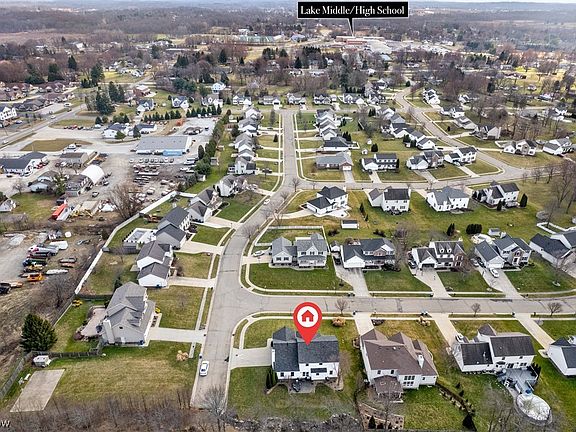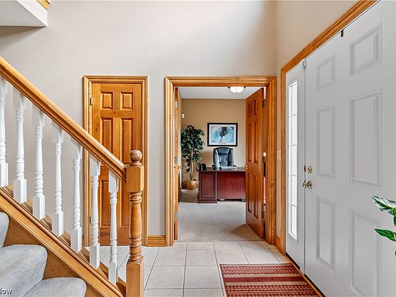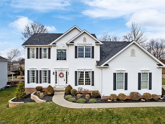 Awesome location for this amazing 4 bedroom, 2.5 bath colonial in the top rated Lake Local School District. Located in the Cornerstone Allotment close to schools, Hartville Kitchen, Hardware and Marketplace. This one has been well maintained by the original owners and shows better than the day it was built. Pay attention to detail as this one has many updates and custom upgrades like 9 ft ceilings on first floor, extra wide garage, oversized trim and solid doors to name a few. You will notice as soon as you walk in the tiled floor that leads to a huge 21x13 kitchen. Kitchen has an island, upgraded cabinets and new quartz countertops in 2021. 20x15 family room w/fireplace. First floor also offers a first floor office, living room, 1/2 bath and formal dining room w/trayed ceiling. Slider off kitchen leads to a stamped patio w/views of the private back yard w/waterfall. Upstairs offers master bedroom w/walk-in closet and full bath w/new corian countertops in 2021. Down the hall is another