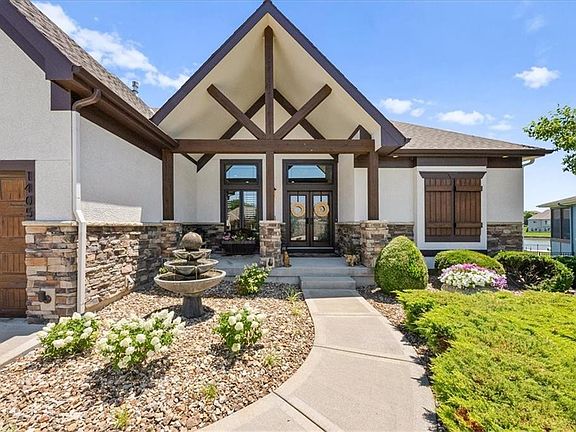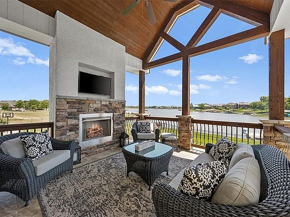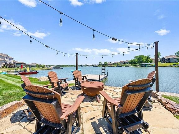 Custom built Reverse 1.5 story on fabulous lake lot. The open floor plan integrates the living, dining, and kitchen areas, creating an inviting space that overlooks beautiful views. The walkout basement has a ton of area for entertaining and walks out to custom gunite, heated, salt water pool with rock waterfall surrounded by stamped concrete decking. Enjoy making smores on the lakeside fire pit area or fishing off personal dock. 3 Car garage with epoxy floors. An additional 22’ x 30’ suspended garage can be used for a multitude of things such as additional storage, workout area or workshop. Full yard sprinkler system with pump using lake water. Water Softener stays with property. New roof, gutters, and main floor A/C. Neighborhood amenities include 2 subdivision pools, tennis/pickleball courts, clubhouse, workout room and neighborhood activities such as cookies with Santa, Easter Egg hunts, bands at the Tavern, and more. Walking distance to Elementary school.