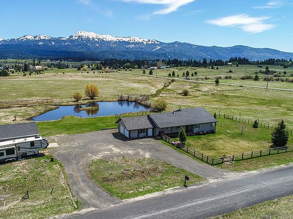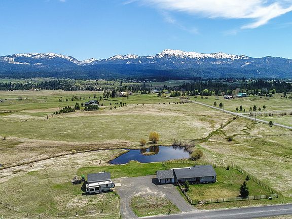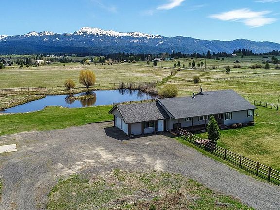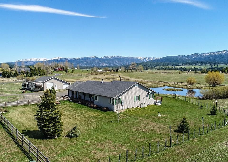 Gorgeous 6 acre parcel with a pond just outside of McCall with wonderful panoramic views of Jughandle Mountain. Single level home with beautiful granite countertops and open views of the mountains from the spacious living room. Wood stove in the sitting room and a zero clearance propane fireplace in the main room keep this updated home nice and cozy. Large covered deck has expansive views of the mountains and is great for entertaining or a quiet evening enjoying the wildlife on the pond. The property has an attached two car garage, but also a 1520 SF detached shop with a finished office space that would be great for running a small business. The property is not encumbered by CC&Rs, so bring the horses. No HOA.
