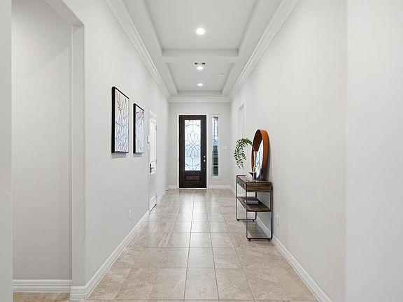 This spacious 1-story home offers an exceptional floor plan beginning with a long grand hallway, setting the tone for elegance throughout. At the front are 2 bedrooms with a shared double-sink bath, followed by a 3rd bedroom with its own private en-suite. A versatile office/game room is conveniently located near the living area & can easily serve as a study, playroom, or additional lounge space. The open living room features tall ceilings, large windows, & a gas-log fireplace flowing seamlessly into the modern kitchen with an island, pantry, & double ovens. A massive dining room opens to the large covered patio with gas connections for a future outdoor kitchen & a generously sized backyard with lush landscaping. The private primary suite sits at the back of the home with huge windows & a spa-like bath including a soaking tub, walk-in shower, & oversized closet. Located in a desirable neighborhood with amenities such as a pool, tennis courts, parks & a community center.