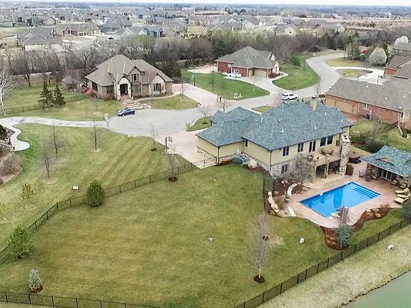 THIS HOME HAS IT ALL! Welcome home to this gorgeous, custom-built ranch on a premier 0.75 acre lakefront lot! The main floor features beautiful and functional open living spaces with formal and informal dining areas, a hearth room with wood-burning fireplace, and an expansive gourmet kitchen with cathedral beamed ceilings, stainless steel appliances, TWO dishwashers, a copper farmhouse sink, and a large walk-in pantry. The main floor also features the master suite with a large walk-in shower, whirlpool tub and a huge walk-in closet with an island, as well as 2 additional bedrooms, an office, and 1.5 baths. The 9â ceiling walk-out lower level is an entertainerâs dream with a large wet bar complete with an oven and dishwasher, a wine room / wine fridge, a home theater with a new projector, rec room, safe room, 3 additional bedrooms, and 2.5 baths. You will love the privacy of the expansive outdoor living spaces in this backyard paradise. Enjoy the beautiful pond views from the large upper deck with a built-in gas grill or curl up by the stone wood-burning fireplace under the covered patio by the pool on those cooler evenings. The saltwater pool has both a new liner and electric cover. The brick and stone pool house with over 500 sqft. of space has its own kitchenette, a full bathroom, and HVAC. The home has exquisite knotty alder woodwork throughout, numerous built-ins, hardwood floors, stone accents, and granite countertops. All of the living areas as well as the master have surround sound. New carpet and pad will be installed in April. If you are looking for the perfect blend of indoor and outdoor living this impeccable home is sure to surpass your every need! (Home has an outside generator that supplies electricity during a blackout)
