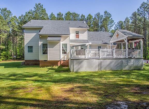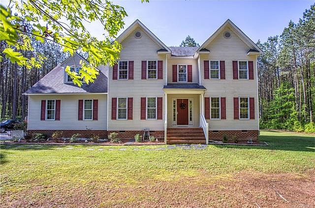 Welcome Home to this beautiful and immaculately maintained one owner home situated on a private 3.5 acre lot in Prince George! The foyer welcomes you with beautiful hardwood floors, crown molding and chair rail, a lovely dining room also features hardwood floors, crown molding and chair rail. The two story family room with gas fireplace, carpet and lots of natural light is open to the spacious eat-in kitchen which has newer laminate flooring and 2 pantries. Also on the first floor is the master bedroom, large master bath with double vanity, corner jetted garden tub, separate shower and walk-in closet. Upstairs there are 4 additional bedrooms (or 3 bedrooms and a bonus room) with walk-in closets and ceiling fans, another full bath with separate double vanities, and a Jack & Jill full bath with double vanity between bedrooms 2 and 3. There is a huge walk-up storage area that is amazing also. Outside there is an enormous deck constructed with composite material and vinyl railings, and a gazebo. This is a must see home! Hurry and schedule your showing today!