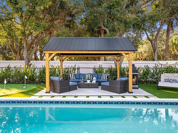 Hello Gorgeous! This stunning 3 bedroom 2 bath POOL home in Paradise Port is fully furnished /turnkey and ready to welcome you home. This home features designer furnishings, updated kitchen, bathrooms and gorgeous engineered hardwood flooring. All the comforts of home with televisions in each bedroom and the living room. This home also features all new furniture and bedding. DID you look outside? WOW! this home features a heated salt pool, putting green, gazebo, fireplace and large turf space for a game of cornhole or the perfect peaceful yoga session. The double chaise lounge is a favorite and pool lounge chairs for catching the perfect South Florida rays. An outdoor grill is also provided for your enjoyment. This is your chance to live less than a mile to the beach and in a beautiful intracoastal community surrounded by multi million dollar homes, fabulous dining, shopping and entertainment. This is South Florida and Palm Beach Gardens living at its best. The owner is fine if you bring your RV or boat as well. Schedule a showing today before this beauty is gone. Please reach out for vacation rental numbers and future bookings.