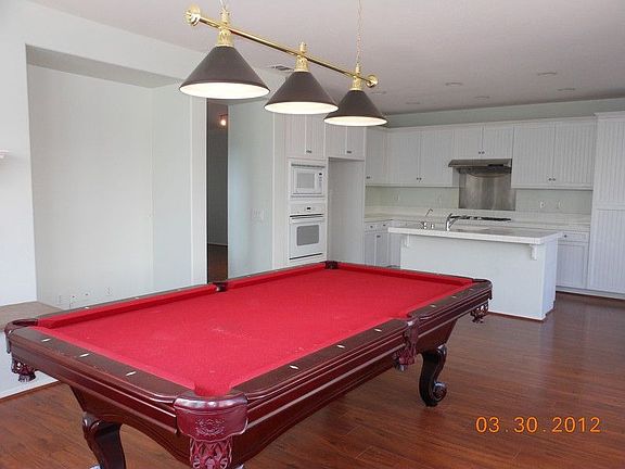ice curb appeal on the two story home with spanish tile roof and wooden decorative shutters on the windows. Alcove front porch with single door entry that opens onto a living room/dining room combination. Double door den/office off the entry. Great raised hearth fireplace in kitchen/family room combination. Built in microwave, oven, range hood and island with breakfast bar. Primary bedroom is upstairs with great dressing area, that includes walk-in closet, dual sinkvanity, oval tub and stan...