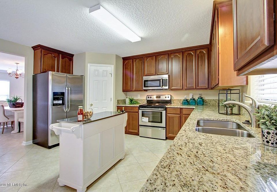 MOVE IN READY, IT FEELS LIKE A NEW HOME! OFFERING FRESH INTERIOR PAINT, NEW CARPET AND TILE FLOORS, LOCATED ON NE JAX, 5 BEDROOMS,3 FULL BATHS, FORMAL DINING ROOM LEADING INTO EQUIPPED, UPGRADED KITCHEN, NEW STAINLESS STEEL APPLIANCES AND GRANITE COUNTER TOPS OPEN BREAKFAST AREA OVERLOOKING SPACIOUS SCREEN LANAI AND VIEWS OF PEACEFUL LAKE, LARGE GREAT ROOM FEATURING FIREPLACE. 1ST FLOOR OFFERS ONE FULL BATH WITH BEDROOM,A GREAT IN LAW SUITE. UPSTAIRS OFFERS SPACIOUS OWNERS SUITE, WITH FABULOUS OWNERS BATH AND GARDEN TUB. THREE EXTRA BEDROOMS AND FULL BATH. INSIDE LAUNDRY LEADING TO THE TWO CAR GARAGE, LONG DRIVEWAY FOR EXTRA PARKING SPACE. HUGE CORNER LOT, BRING YOUR FAMILY GREAT NEIGHBORHOOD, WITH COMMUNITY POOL AND PLAYGROUND.