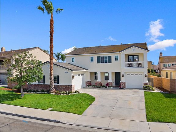This distinguished two-story residence is a testament to refined living, offering an expansive 3,292 square feet of thoughtfully designed space on a generous 9,148-square-foot lot. Built in 2006, this home seamlessly blends comfort and sophistication, featuring five well-appointed bedrooms and three bathrooms. A stately palm tree enhances the home’s commanding curb appeal, while the attached three-car garage provides ample parking and storage. Inside, soaring ceilings and an abundance of windows bathe the interiors in natural light, creating a grand yet inviting ambiance. The open-concept living area flows effortlessly into the family room, where a fireplace and a recessed entertainment nook elevate the space. The chef’s kitchen is a masterpiece of form and function, boasting granite countertops, a central island with a breakfast bar, and a charming breakfast nook. A formal dining room offers an elegant setting for hosting, while durable Pergo flooring throughout the home adds both style and practicality. The primary suite serves as a tranquil retreat, featuring a spacious en-suite bath with a separate soaking tub, walk-in shower, and dual vanities. Secondary bedrooms are generously sized, ensuring comfort for family and guests. A dedicated laundry room, complete with a sink, enhances convenience. The private backyard is designed for both relaxation and entertaining, featuring a concrete patio ideal for outdoor dining and a lush grassy area perfect for play. Located within the highly rated Corona-Norco Unified School District, this home offers access to top-tier schools. With convenient access to major freeways, including the I-15, 91, and 60 freeways, commuting is seamless. Eastvale’s vibrant community amenities, parks, and shopping centers further enrich the lifestyle this home affords. A rare opportunity to experience elegance, space, and unparalleled comfort in one of the region’s most sought-after neighborhoods.