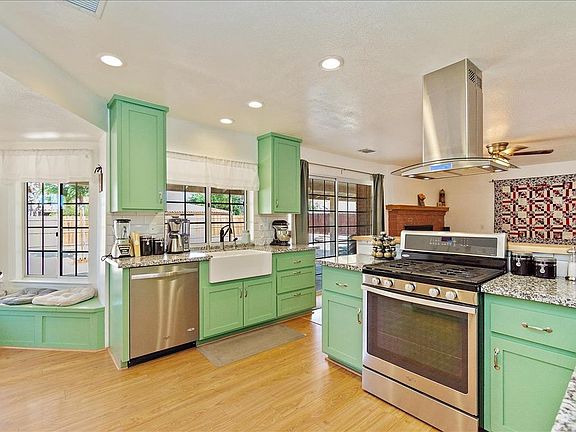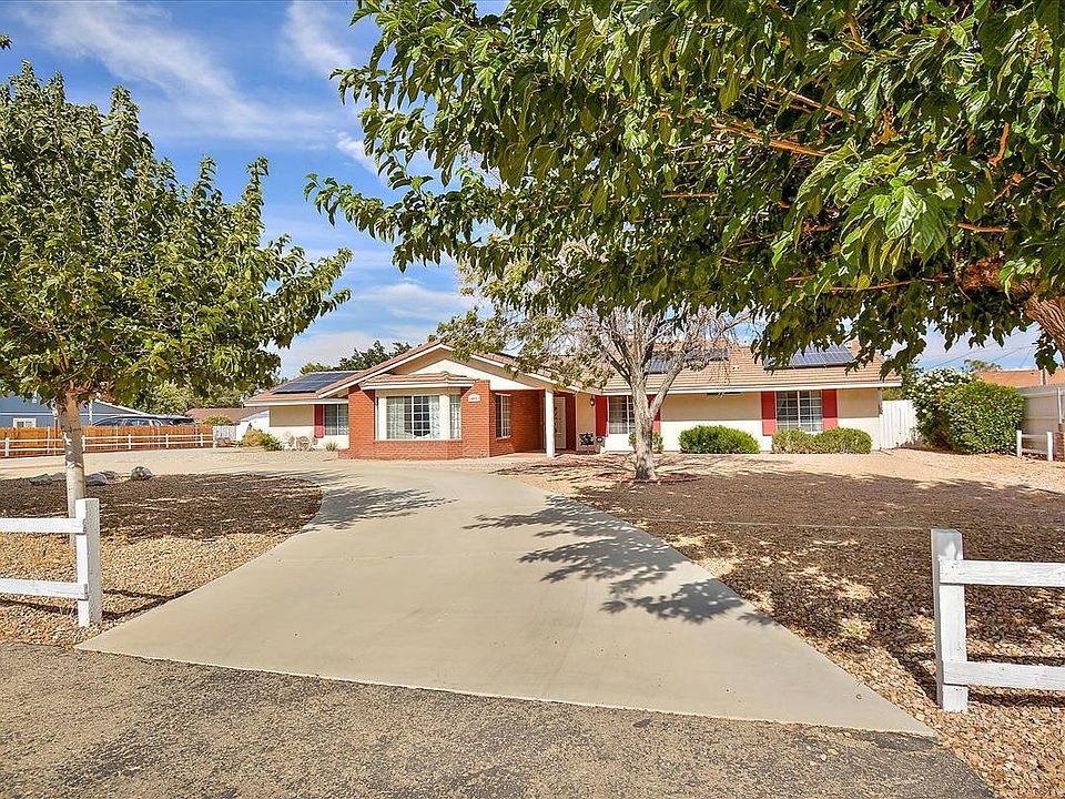 Beautifully remodeled home in Apple Valley! As you approach, you'll notice a white ranch fence, horseshoe driveway, rock-scape and established Mulberry trees. One end of the driveway is oversized and extends to the back yard, providing abundant space for your RV and toys. Separate concrete pathway leads to your covered entry, with a single door and glass insert. Brick accents surround the home, adding to its curb appeal and interest. Very spacious inside, this home has ample storage, recessed lighting, overhead fans, soft-close cabinets and granite countertops throughout. The living room's fireplace is great for those brisk desert nights. The kitchen is open to this space with a bar top - perfect for entertaining. It also features an apron sink and window overlooking the backyard, stainless steel appliances, and an oversized pantry. The dining nook has built-in bench seating, with storage. Large family room features built-in window seating with storage; an ideal space to settle in with a good book. Move towards the 3 bedrooms and you'll notice the hallway features under cabinet lighting. Sliding glass doors from the living room and main bedroom exit to the covered patio with overhead fan. The horseshoe pit sits at one end of the property, with 2 outbuildings at the other. Excellent for storing tools/toys or converting to a hobby hut, utilizing the pre-wired electricity.