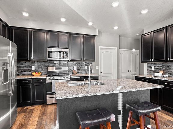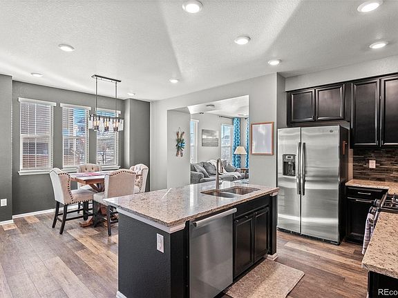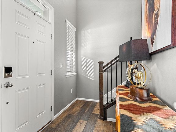 Wow! This designer inspired home will knock your socks off with all the upgrades, beautiful high end selections and a wonderful floor plan. The end unit on one of the biggest lots in the complex allows for terrific privacy and a nice side yard you'll want to spend time in. The sumptuous primary suite has a coffered ceiling, beautiful designer paint, custom light fixture and a fully customized and huge walk in closet with adjustable Elfa® shelving and racks. Smart features throughout include phone controlled locks, garage door, thermostat (Ecobee)and Lutron Caseta lights. Say, Alexa, I'm home." The Ring video doorbell is a nice security feature too! The light fixtures in this home were individually selected to provide comfortable and classy lighting while the designer paint schemes create an ambiance perfect for entertaining and everyday living. With a great view of Longs Peak from upstairs, this home can be your base camp for adventure with low maintenance, extremely tight, new construction a great garage with thoughtful bike racks, hooks and more Elfa shelving! The well thought through floor plan has room for everyone and a terrific home office setup along with many intelligent upgrades. This kitchen also boasts a huge pantry, soft close cabinets, beautiful cabinet and drawer pulls and a new Miele Futura Crystal dishwasher that is remarkably quiet. The upstairs laundry boasts an Electrolux washer and drier that are so nice you'll be fighting over who does the laundry. For dog lovers the home will come with a second door equipped with a high end doggie door!