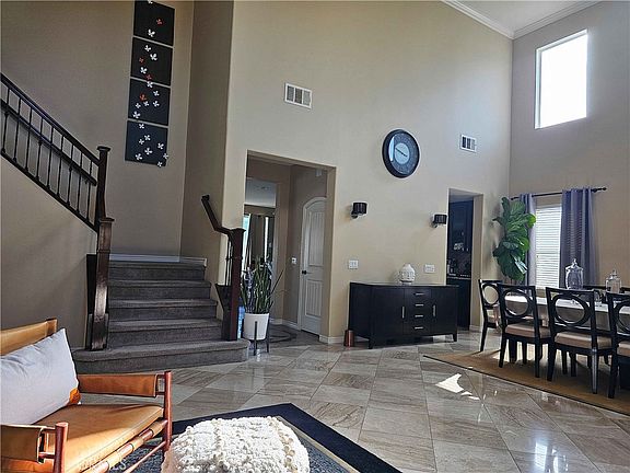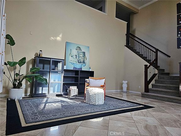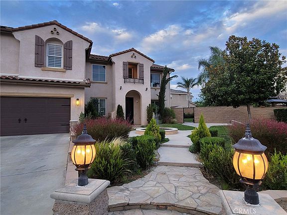 This 4bd 3ba, two story single-family home right smack in the middle of Interstate 15, CA-91 and 60. Only a few miles away from Town Center at The Preserve, minutes away from grocery stores and restaurants. Tucked away on a quiet cul-de-sac, this place is flooded with natural light due to its high ceilings. Fancy travertine tiles and arched door frame designs throughout the house. Newly upgraded kitchen with stainless steel appliances, large granite kitchen island for casual dining, and a breakfast nook that leads out to the backyard. The open floor plan makes it easy to chat while cooking and cozying up by the fireplace in the family room. 1bd and ¾ba on the ground floor. 3-car epoxy-floor garage for possible expansion. Upstairs consists 3bd 2ba and a spacious loft which can easily be converted into a home office. The generous space of the primary bedroom and bathroom comes with a large walk-in closet that offers comfort and functionality. Large backyard with swimming pool landscaped with water slide, grotto and Jacuzzi. Spacious side yard, built-in BBQ grill, gas fire pit and a pergola create an ideal setting for outdoor activities. Don’t miss the chance to call this well-maintained home yours!