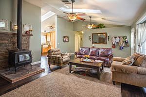 Gorgeous, Recently Upgraded Home with 4 bedrooms and 3 bathrooms located on a spacious 4+ acre usable property. This incredible home features a bright open floor plan, hardwood floors throughout, a beautiful kitchen with knotted hickory cabinets & granite counter tops, a covered patio with stamped concrete, RV parking, professionally landscaped front & back yards with 6 wonderful fruit trees.