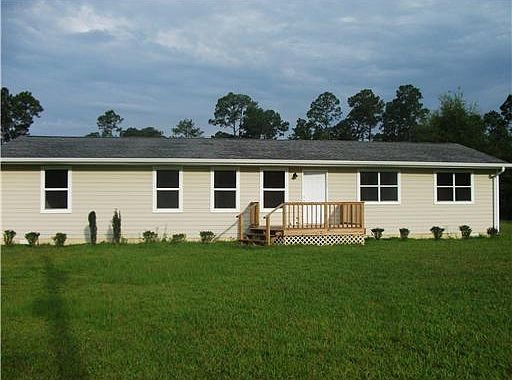 Not a mobile home! Serene living wonderfully set on 1.3 acres featuring hardwood floors, kitchen opening to a covered porch through french doors. Large Master Suite with split floor plan with living room leading to three bedrooms and full bath. Hardiplank exterior makes for a green exterior.