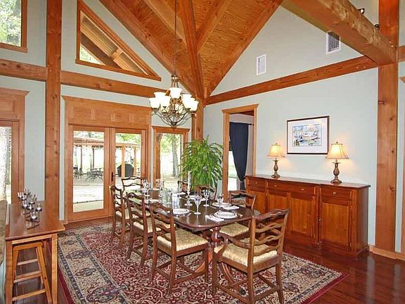 Waterfront property on Lake Tyler, approx. 3 acres with 40x50 shop, boathouse, party pavilion, gated entry, and 2 COMPLETE HOMES! Main home has beautiful Timber frame construction with brick and stone exterior, hardwood flooring, large kitchen with stainless appliances, granite, huge built-in refrigerator; home theater with projector and theater seating; separate office, romantic master suite with access to utility room, gameroom, approx. 3223 sq.ft. per SCAD. The 2nd home has approx. 2520 sqft. per SCAD, built in 1962, 2 living areas, master suite with private bath, kitchen and breakfast room open to living area, wood siding. Boathouse with 2 stalls, concrete retaining wall. Huge pavilion with party lights.