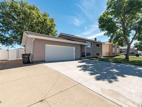 Take a look at this well maintained move in ready home located in North Mandan. The main floor features an open kitchen with center island and pantry, bright living room, and the dining room which leads to the large back deck. Also on the main floor is a full bathroom, primary bedroom, and 2nd bedroom. The basement offers a spacious family room, 2 bedrooms, updated 3/4 bathroom, and laundry room. The backyard is fully fenced with maintenance free fencing and has a nice concrete patio. Additional features include an RV pad, steel siding, steel coated roof, yard shed, new A/C unit in 2021, and a new driveway in 2020. Lots of nice features in this home, call a REALTOR today for a private showing.