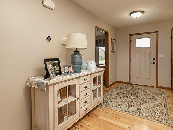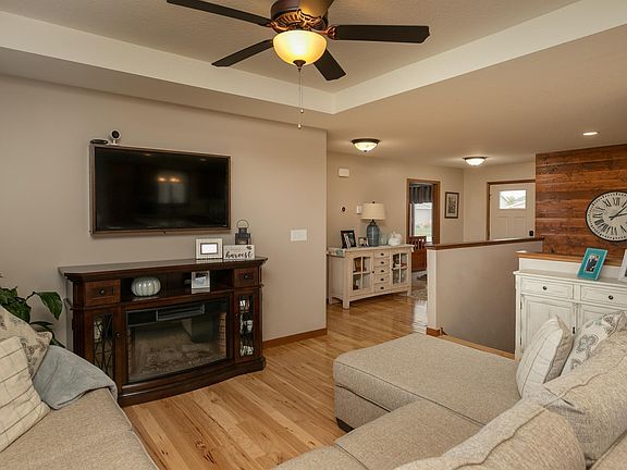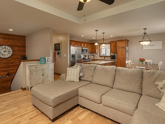 Gorgeous newer ranch-styled home with 5 bedrooms, 2 baths and 3 car garages. Open floor plan with beautiful hickory floors on main level, quartz countertops, box ceilings in the living room, tray ceiling in master and main floor laundry. Family room features custom stone fireplace and built-ins. Enjoy the newer deck overlooking the nicely landscaped yard.