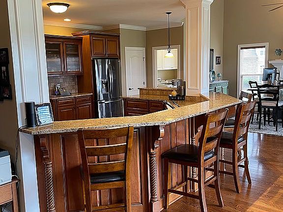 IMMACULATE move in-ready colonial style family home located on cul-de-sac in highly sought after Wright Farms subdivision located near Providence shopping center and Mt. Juliet, TN. Interior features include soaring ceilings, open floor plan, first floor master bedroom, gourmet kitchen with dual oven, oversized custom 14-foot “eat-at” granite breakfast bar, soft-close cabinet drawers, 2 fireplaces, newer StainMaster carpet and neutral paint throughout, and recently remodeled custom master closet. Bonus room features built-in surround sound speakers. Exterior features include extended over-sized driveway, circular driveway for extra parking, fire pit, covered back porch, and gas grill. Other features include: 6 ft master shower with seat, jacuzzi tub, central vac, upgraded security system, 4-inch plank hardwood flooring, tile flooring in kitchen, bathrooms and laundry, newer water heater, water softener system, ceiling fans, and faux wood blinds.
