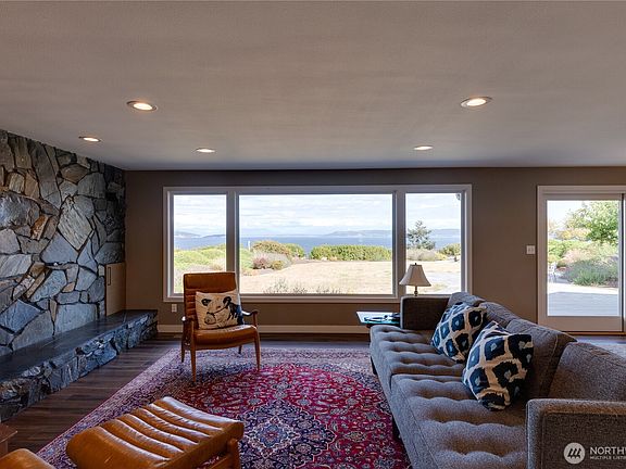 Take in the views of Saratoga Passage in this classic Northwest home extensively remodeled in 2021 with a new great room, workshop, and garage addition. The chef's kitchen features double ovens, wine refrigerator, and island bar seating, and flows into the living room—all showcasing stunning sound views. The open floor plan allows ample space for entertaining, while a separate living area offers a second fireplace and built-in bookshelves with custom sliding library ladder. Throughout the home, find features such as custom solid-wood cabinetry, heated towel bars, and cedar closets. Outside, landscaped grounds with paved walkways, seating areas, and deck offer a place to enjoy panoramic vistas of the Cascade Mountains and Puget Sound.