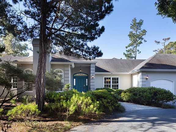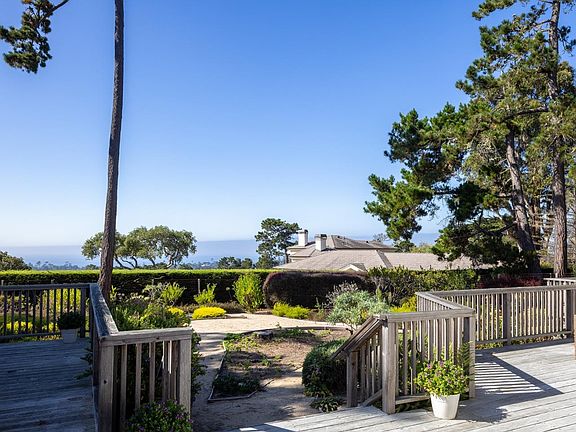 This custom-built single-level home spans approximately 3,500 sf. and is perfectly positioned to capture beautiful ocean views and stunning sunsets. Nestled in a sought-after Pebble Beach location, the home boasts a comfortable layout with two inviting living rooms, each with its own fireplace, a formal dining room, and a spacious kitchen with a view and abundant storage - perfect for seamless entertaining. The sizable bedrooms are thoughtfully arranged for comfort and relaxation, and the large backyard deck offers a tranquil space to unwind and enjoy the surroundings. An attached 3-car garage provides ample space for storage, and is ideal for car enthusiasts or hobbyists. Set on a generous sized lot, this serene retreat offers privacy and natural beauty. Dont miss this rare opportunity to enjoy Pacific Ocean views in this exceptional location!