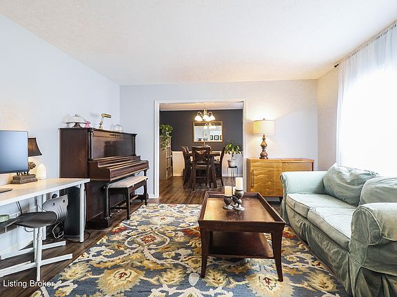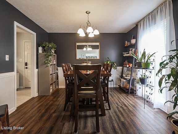 Welcome to this charming ranch home in Goshen within the North Oldham School District. You will be impressed the moment you arrive to this well-kept ranch home brimming with curb appeal. Light fills the spacious living room with a large picture window and light calming colors. The gorgeous new LVT wide plank flooring leads into the large dining room with custom colors and more light filling into the room with a floor to ceiling window. The dining room leads to the kitchen with newly updated cabinets and hardware. The bay window is the centerpiece of the eat-in area that looks over the massive backyard. From the entry way or the kitchen you can enter the family room made for evenings around the fire or for relaxing on movie night the room is highlighted by a vaulted ceiling, painted beams and entry to the deck. The beautiful wide plank flooring beckons you down the hallway to a full bath with updated fixtures, vanity and faucet. Across the hall is the first bedroom perfect for guests or a home office with views of the huge front yard. A sizeable bedroom at the end of the hall is the perfect size for sharing! Finally, the primary suite is nicely updated with plenty of room for a king size oasis . The full bath includes a shower, large vanity and walk-in closet. This house was made for outdoor entertaining with the massive two leveled deck that overlooks the shaded huge fully fenced yard. So much storage with two sheds that remain. Homes in Goshen do not come on the market frequently and this one is gorgeous and ready to move in!