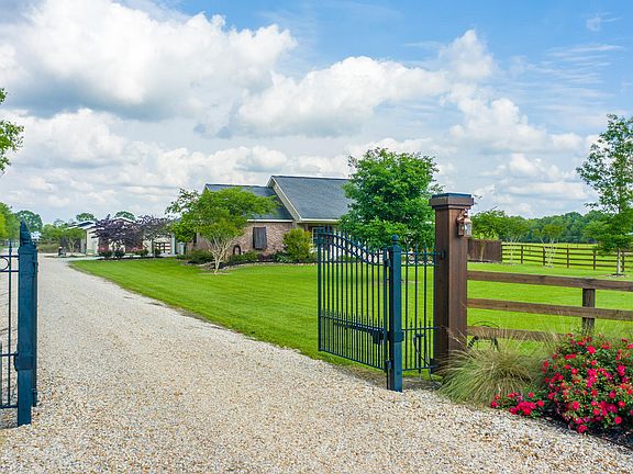 undefined with large closets and a full bath located on one side of the home. The guest bath has a beautiful tile surround shower/tub combination and great storage. On the opposite end of the house is an office which can be utilized as a 4th guest room, and the large primary ensuite features a walk-in closet, double vanities, linen closet and a large walk-in shower. Entry into the utility room is accessed through the garage and adjoins the kitchen area for ease in transporting groceries. The view from the breakfast area is the beautiful, inground pool, brick paved walkway, patio and pool house. The kitchen and breakfast area allow you to take in the beauty of the manicured lawn, beautiful outbuildings and your livestock. The garage features one 8' and one 10' bay door to accommodate a one-ton dual wheeled pickup and the walls are drywall covered with primed and painted beadboard. Sit on the front porch and sip your coffee or enjoy your personal oasis in the back while you take a dip in your pool or enjoy a cookout. The hardie-sided and cypress pool house is absolutely adorable, and features cypress columns, handrails, exposed beams and rafters and v-groove cypress. The interior boasts a changing room with cabinets, vanity, water heater with a separate shower and toilet room. The custom milled cypress and eastern red cedar cabinets, wainscoting, trim and v-groove ceiling with crown molding are just some of the detailing that went into this pool house. It is air-conditioned and the outside has two adorable porches/decks to relax and enjoy your gorgeous outdoors. The outside of this estate features a 24x36 workshop constructed of hardie siding w/cypress trim. The front portion is 24x20 and is insulated and air-conditioned and presently utilized as guest area/man cave. The rear portion features lots of built in storage with a large workbench with room to park the tractor with the front-end loader. Three additional sections feature storage for lawn equipment, tools and pool equipment/chemicals. The incredible barn on this property is 36x60 with 12x12 stalls, large tack room, feed room and features a raised center aisle. All stalls are lined with heavy rubber mats and feature custom made stall walls and dividers attached to a steel frame. The tack room is 12x18 with custom made cypress saddle racks, saddle pad racks and hangers for bridles, halters and other tack. Feed room is 6x12 and features shelves for storage. Outside of the barn is a 30 amp camper/living quarter trailer hookup and water. Near the bar are covered and lighted dog kennels (3) and a covered and lighted wash rack made mostly of cypress. Behind the dog kennels and wash rack is a 4 horse walking wheel. A 125x125 training pen is located on the back side of the barn constructed of steel panels and lined with 6' wood pickets. Pen is lighted and located nearby is a catch pen with a chute and head gait for working cattle. The land has three smaller pastures of approximately 1.5 acres each with a 12x15 run-in shed wrapped in cypress. Plywood kick-boards line the interior. The large pasture behind the training pen is approximately 14 acres and fenced with barbed wire or hog wire and electric fencing. Bordering the front and much of the area is the 1,600' of 5' tall 4 rail fencing.