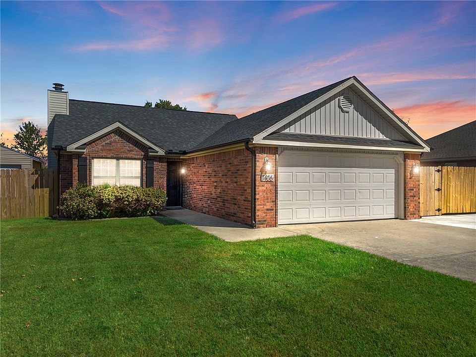 Welcome to 1406 Chitwood Street! This lovely 3-bedroom, 2-bathroom home is nestled in the small, growing town of Pea Ridge, making it perfect for first-time homebuyers or investors. Step inside to find a bright living space with real wood floors and a cozy fireplace for chilly evenings. The modern kitchen features granite countertops, custom oak cabinets, and stainless-steel appliances, along with a separate breakfast bar for easy entertaining. A portion of the garage has been finished and is heated and cooled, providing versatile space for an office or play area. The driveway has been extended to allow for additional parking at the front. Enjoy the spacious backyard, ideal for relaxation and gatherings, all within a peaceful neighborhood with easy access to local amenities and schools. Don’t miss out on this wonderful opportunity—schedule your showing today!