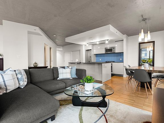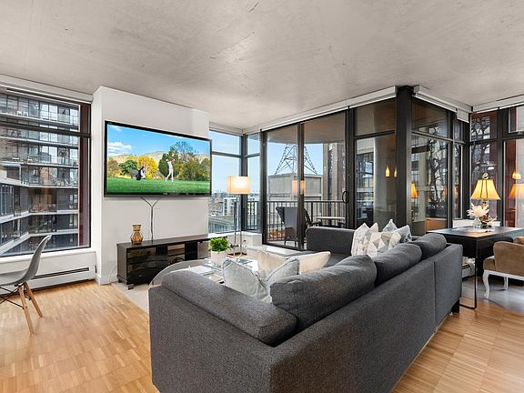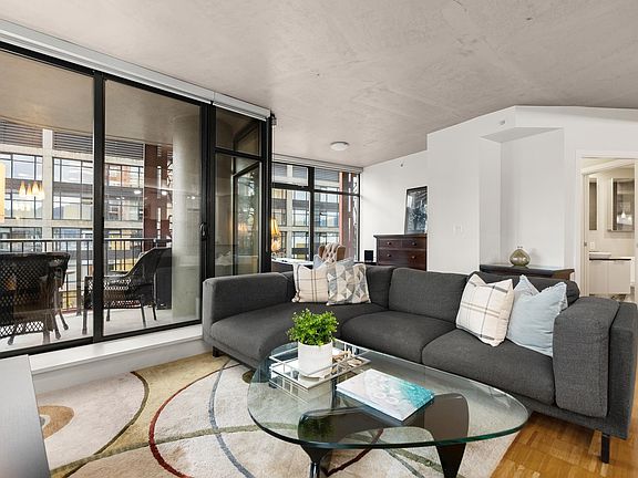 This spacious and modern SE corner unit in the historic WOODWARD's building offers a comfortable and luxurious living experience. With 2 bedrooms (+flex) & 2 bathrooms there is plenty of room for relaxation and productivity. Floor to ceiling windows allow for natural light, the stainless steel appliances add a sleek and contemporary touch. Plenty of in-suite storage. The rooftop amenities, Club W is a highlight, featuring panoramic views, an indoor/outdoor lounging area, library / media room, exercise center & the hot tub in the shape of a W adds a unique touch to the building. 24-hour concierge, 1 parking & pets / rentals are welcome. Situated in a prime location with easy access to art galleries, boutique shops, and gourmet restaurants, promising a dynamic and exhilarating lifestyle.