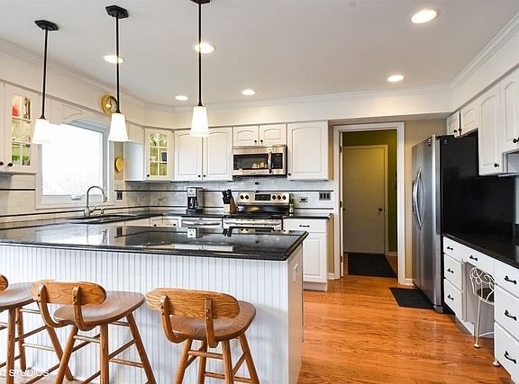 Family is sure to enjoy ice skating, hockey, kayaking & fishing in a stocked lake in their own back yard. 4200 sf home has dramatic volume entry. It offers a spacious formal living room + separate dining room plus a first floor study. The updated kitchen with a breakfast bar is sun-filled and open to the eating area overlooking the family room with a wood burning fireplace. An adjacent laundry room with washer and dryer hook ups is currently being used as a mud room (laundry room was moved to the lower level). Visitors will marvel at fab views of the lake & park like setting through every window. The deck can be accessed through the family room or exterior staircase leading up from the back yard. Wonderful finished walk out lower level features a recreation room with a fireplace, a bar, second kitchen, bonus room, full bath and a 5th bedroom/exercise room. Recent updates include new roof, gutters, fascia, soffit, water heater & softener.