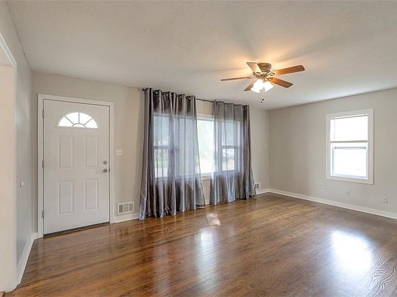 Dining areaHardwood floorsUpdated kitchenLarge front windowFront porchFenced backyard