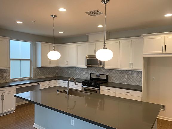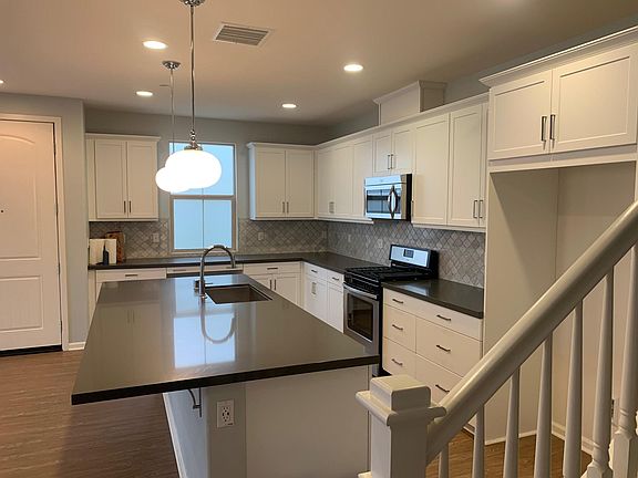 Luxury, resort-style townhome located in desirable gated community - Open floor plan with 3bdrms, 2.5 baths & upstairs laundry room, 2-car garage with direct entry. Shows like a model! Custom paint, gorgeous kitchen with quartz counters, pendant lighting, stainless appliances, white cabinets, plantation shutters, LVT flooring downstairs, recessed lighting, full-size washer & dryer upstairs. Large primary bedroom, double sink vanity, separate tub/shower, walk-in closet, ceiling fans, a true gem! Owner pays HOA dues