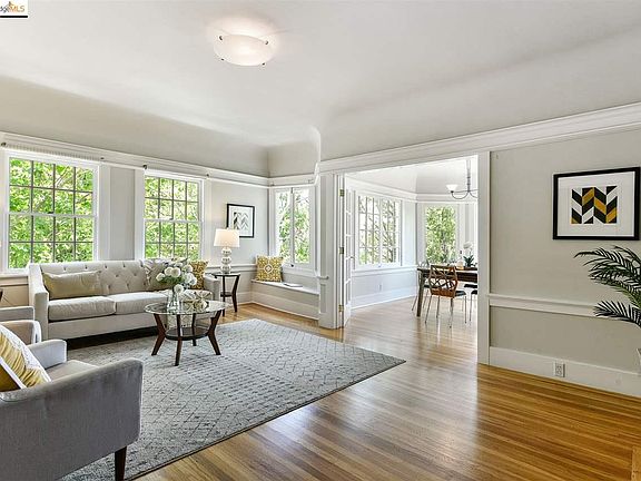 Elegant sun-drenched view home in a graceful six-unit building near Berkeley Rose Garden. Gorgeous period details and modern amenities. Golden Gate and Mount Tam views from both bedrooms and sun room. Treehouse feel from living and dining rooms. Bus or stroll to UC Campus and the best of North Berkeley. Garage, storage and exclusive-use laundry make this nest the best!