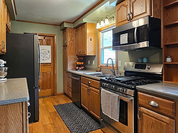 Great family home located outside city limits, yet only five minutes from downtown. This home has been nicely updated in recent years. Features three bedrooms, two bathrooms, bonus room with closet, and breezeway/office. The fully finished basement includes a large family room and extra space for entertaining, plus a storage/laundry room. Huge backyard with privacy fence, lofted shed/tree house, fire pit, deck with grill and smoker platform, chicken coop/dog pen, fenced garden, and additional storage shed. New: Driveway, water heater, bathroom, and all oak interior finishes. This home is located within walking distance of East Coloma School, three parks, the Hennepin Canal Walkway, and four community boat docks. Seller is rtelated to the agent.