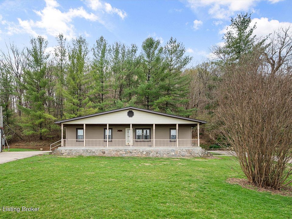 Tucked behind this beautiful stone wall fence you will find a 3 bedroom home with an eat in kitchen as well as dining area. Family room with cozy electric fireplace. The large concrete circular drive way flows from each side to the rear of the home. Full covered rear patio AND covered full front porch. Detached garage/shop with electric and concrete flooring. Large wood stove and engine hoist among an abundance of shelving and benches in the garage/shop. New roof on the house and garage. New flooring in the kitchen and laundry room. All situated on 3 lots conveniently located in Carrollton.