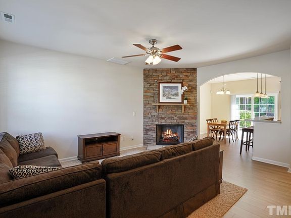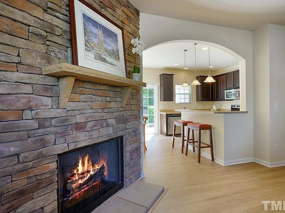 Welcome HOME! Well maintained townhouse, sparkling clean, and move-in-ready. Open 1st floor with BRAND NEW FLOORING, large living room, stunning gas fireplace, and expansive kitchen with SS appliances. Private patio looks out to woods beyond. Owner suite on 2nd floor with vaulted ceiling, walk-in closet, and bathroom w/ soaking tub. Two more bedrooms upstairs, 2nd full bath, and laundry. Two reserved parking spaces out front (#101). Enjoy community clubhouse and pool. Near greenway trail, parks, & RDU/RTP.
