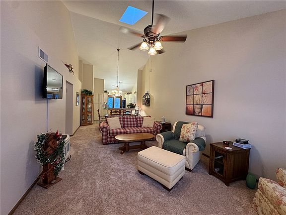 GORGEOUS 2 bedroom 2 bath ranch w NO steps Custom cream wood cabinetry w subtle dark edging & striking cream granite w black veining Everyone’s favorite, gas cooking Bi-level counter hides clutter in a busy kitchen Access to private covered patio w panoramic view Thick, plush carpeting is soft & warm on bare feet Neutral painting thru out Bathrooms boast custom shower doors, intricate tile details & elegant vanities w granite countertops Owners suite w walk in closet Custom “Plantation Blinds” throughout give total privacy closed, partial privacy w slats opened or can be folded back to reveal the entire window Full view front storm door Sliding door in kitchen w built in micro-sized blinds between the layers of glass Dramatic cathedral ceiling w skylight, ceiling fan & ledges to display decor Condo covers exterior building, snow removal & landscaping, heated pool & clubhouse Superior quality Pristine clean Garage floor w ’stone’ finish Don’t delay viewing! This is an exceptional home