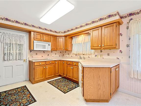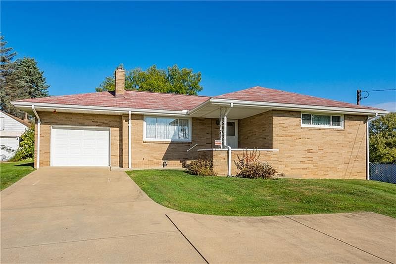 Spacious living room with stone fireplace and large picture window welcomes you into this solid, brick ranch with oak kitchen - 3 comfortable-sized bedrooms - 23 ft. enclosed patio overlooking fenced rear yard - tilt-in vinyl windows - Pgh. bath in lower level - Updated HWH, Rheem furnace and electrical service panel. Carpets can be removed to expose oak hardwood floors.