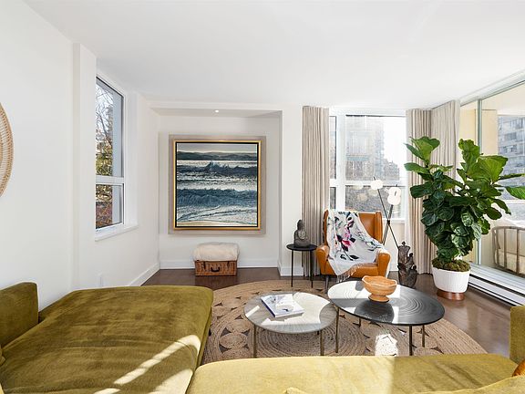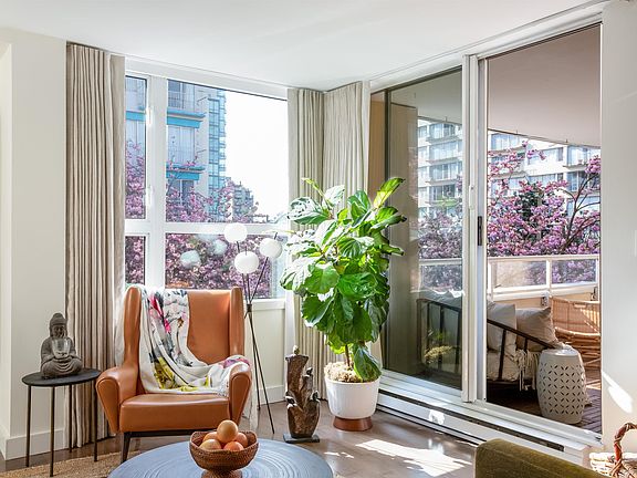 A true city oasis on the shores of English Bay & Sunset Beach. Architecturally award winning "Julia Court", a boutique concrete building of just 20 homes w/ open air hallways. This professionally decorated & renovated 2 bedroom home is uniquely bright & quiet w/ picture windows on all four sides plus a 100 sf S/facing patio w/ intimate water views. Upscale Manhattan meets West End, in this Sunset Beach beach house oozing with elegance, style & park-side living. Large formal sitting room with picture windows, custom lighting & drapery, sophisticated hidden TV, 2 bedrooms, renovated kitchen w/ stainless steel appliances and spa-like bathroom. Proactive strata- rain screened, re-piped building w/ new roof and elevator in 2024. OPEN HOUSE FEB 8TH & 9TH FROM 1-3PM