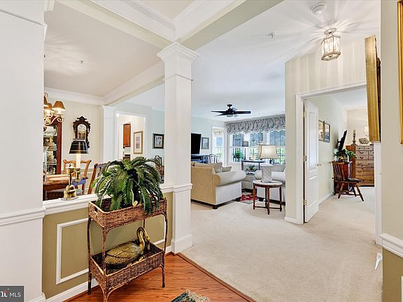 Welcome to the Charming Joppa Forest 55+ Condo Community! Discover the perfect blend of comfort and convenience in this beautifully maintained condo community. The attractive buildings feature elevators, a spacious main entrance, and wide, open hallways on each level with cozy seating areas—ideal for relaxing and socializing. Step inside this delightful condo and be greeted by a lovely foyer with elegant crown molding, a walk-in closet, and an additional storage closet. The expansive dining room, adorned with crown molding and chair rail, flows seamlessly into the generously sized living room—perfect for entertaining or quiet evenings at home. The primary suite is a true retreat, featuring a tray ceiling, ceiling fan with light, linen closet and a luxurious en-suite bath with a walk-in shower and double-sink vanity. A second bedroom offers private access to the second full bath, which alsooffers a second door that connects to the living room for added convenience. You’ll fall in love with the kitchen, breakfast room, and bonus space—ideal for a study, reading nook, or hobby area. Spacious Separate laundry room. Step out from the breakfast room onto your balcony. Residents also enjoy access to a clubhouse in the adjacent building, complete with an exercise room. Don’t wait—schedule your showing today and experience the charm of Joppa Forest living! Pets allowed. Call condo managent to review verify if pet restrictions apply. Condo number in the listing. Cinch 1 Year Home Warranty Included!