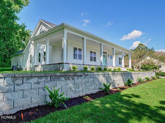 Nestled on a beautifully elevated .46 acre lot, this custom four bedroom, three full bath home offers wonderful views of the Intracoastal Waterway, South Topsail Island and the scenic grasslands between. With its extraordinary wrap around porch and open floor plan, this design provides exceptional views from many primary areas of the home. The simple but elegant Craftsman style interior details and warm/neutral color pallet are sure compliment a wide range of home decor. This property is not located in a flood zone and is move-in ready.