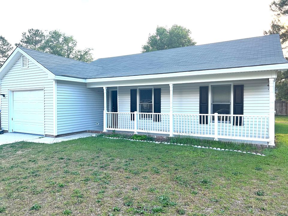 A nicely sized 3 bedroom 2 full-bath single family home that is freshly painted with some modern renovations. It is seated on a corner lot with a spacious backyard. It features a master bedroom with en-suite bathroom and a fireplace in the living room with vaulted ceiling! It also comes with a washer and dryer hook up and has an attached garage! Located minutes from shops and restaurants (Cross Creek Mall) and in a good school district! PLEASE NOTE: Showings will be conducted by Realtor( Greg Long: NC Real estate commission license # 278044) No smoking and No pets allowed. Tenant responsible for all utilities (water, electric, trash, etc)