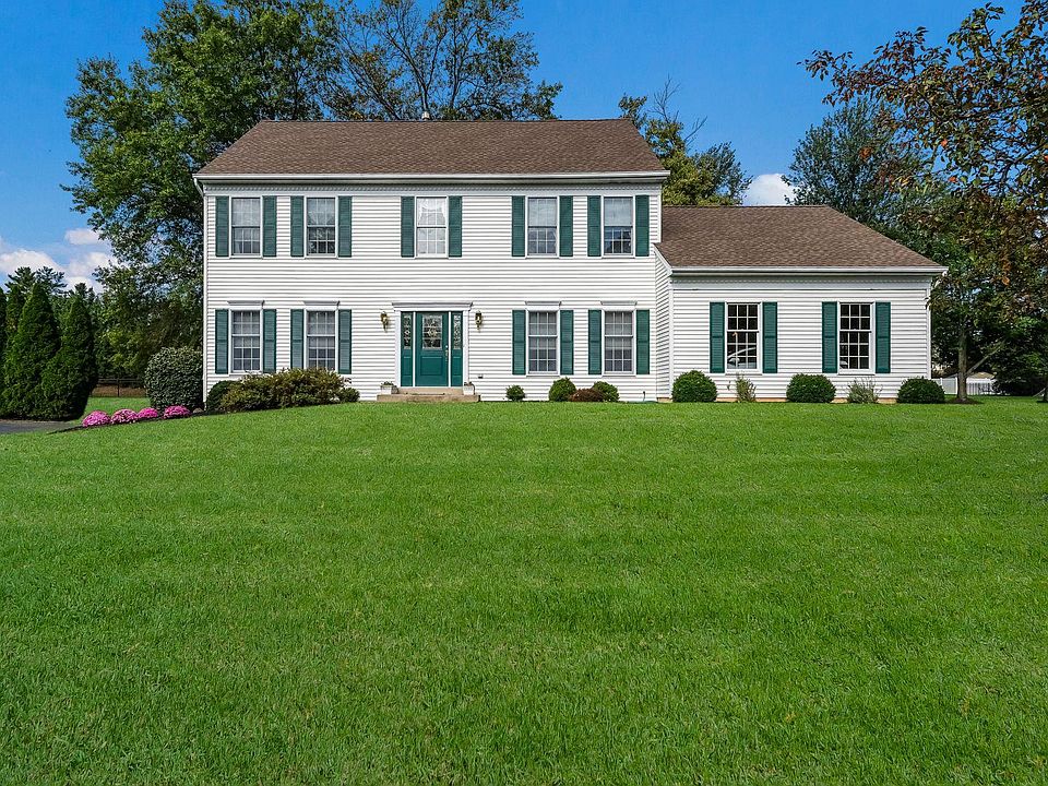 Welcome to this well-maintained 4 BR, 2.5 BA center hall Colonial in Warwick Estates. Formal, 2-story entry with hardwood floors & custom molding. Formal Living room with wall-to-wall carpet & crown molding. Formal Dining room with wall-to-wall carpet, crown molding & chair rail leads to Eat-in Kitchen with center island with breakfast bar seating for 2, 42” oak cabinetry, granite countertops, recessed lighting, gas range with overhead microwave, built-in dishwasher, stainless steel under mount sink, ceramic tile floor, secretaries desk & large Breakfast room with double atrium door leading to a large Sunroom with vaulted ceiling, ceiling fan, crown molding, lots of large casement windows welcoming in the sunshine & atrium door leading to deck overlooking rear yard. A half wall separates the Breakfast room from the Family room with wall-to-wall carpet & brick, a wood-burning fireplace with raised hearth & mantle & triple window with a view of the rear yard. The first floor also offers a powder room and laundry room with access to the 2-car, side entry Garage. The second level offers a large Primary Bedroom with wall-to-wall carpet, walk-in closet with built-in shelves & full bath with ceramic tile floor, soaking tub with ceramic tile surround, a separate walk-in shower & double vanity. Three additional large bedrooms all feature wall-to-wall carpet, Full Hall bath with ceramic tile floor, double vanity & tub/shower combination. Full Basement. Lennox Gas Heat & Central air (2015), 50 gal. gas hot water heater (2019), New roof (2020), Newer driveway (2016), transferable leaf filter system (2020). Don’t miss this lovely home in a desirable neighborhood & CB Schools!